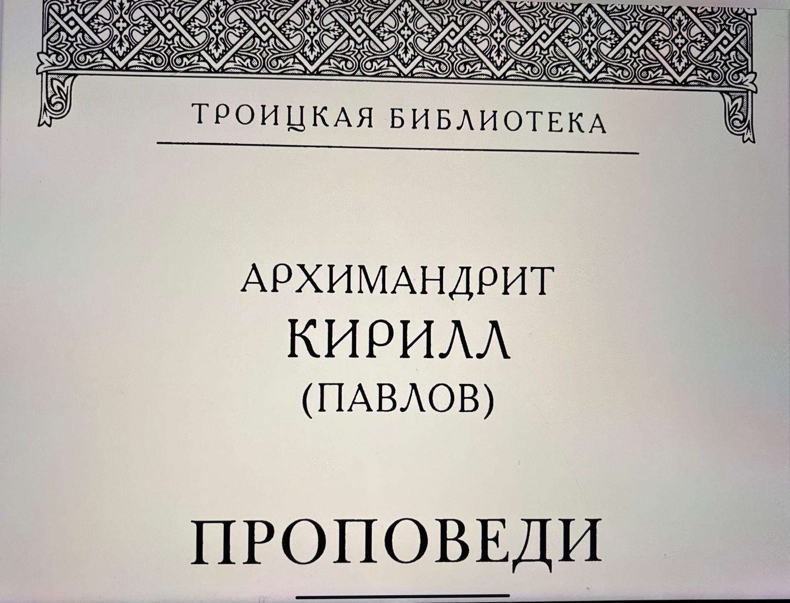 Желающим полностью ознакомиться с этой книгой: https://azbyka.ru/propovedi/wp-content/uploads/bg_forreaders/Arkhimandrit_Kirill_Pavlov_-_Propovedi.pdf